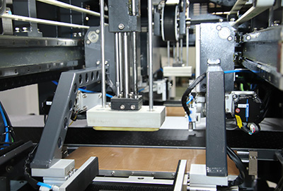 7)过胶面纸与纸板内盒采用雅马哈YAMAHA机械手影像定位,能够准确地定位贴合,精度±0.1mm。