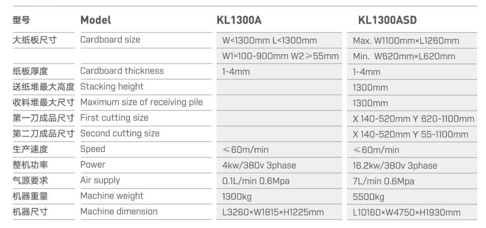 稳定性强: KL1300A纸板切割机采用优质材料和稳定的结构设计,具有很强的稳定性,可以长期稳定运行。
